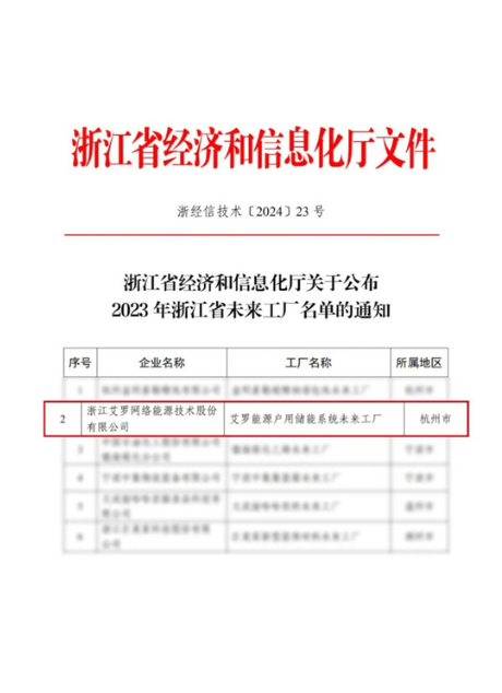 2024:“利博能源户用储能系统”上榜浙江省未来工厂
